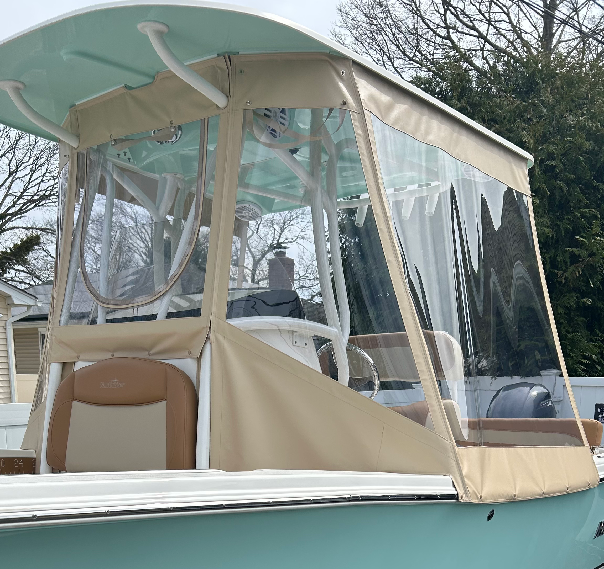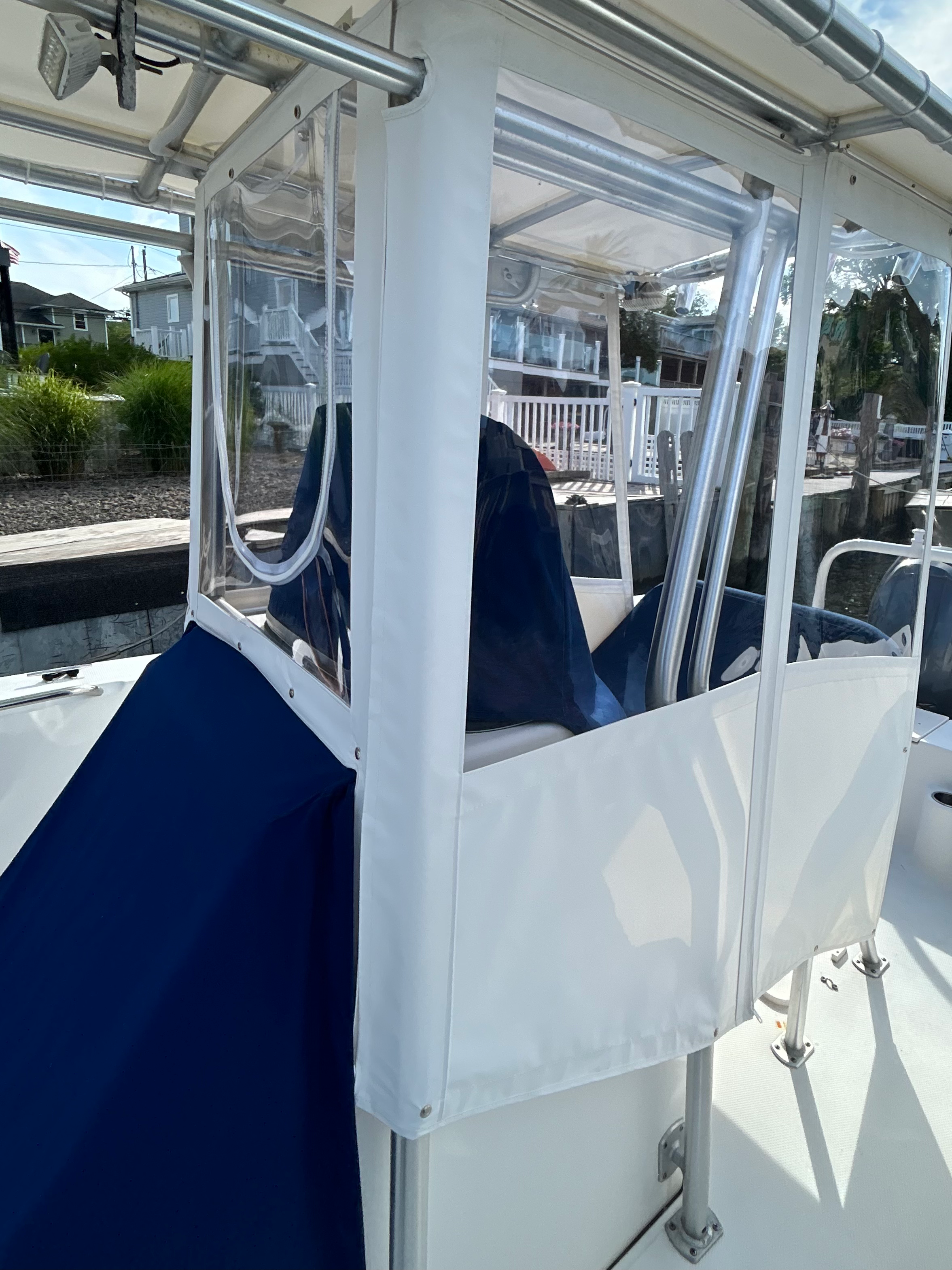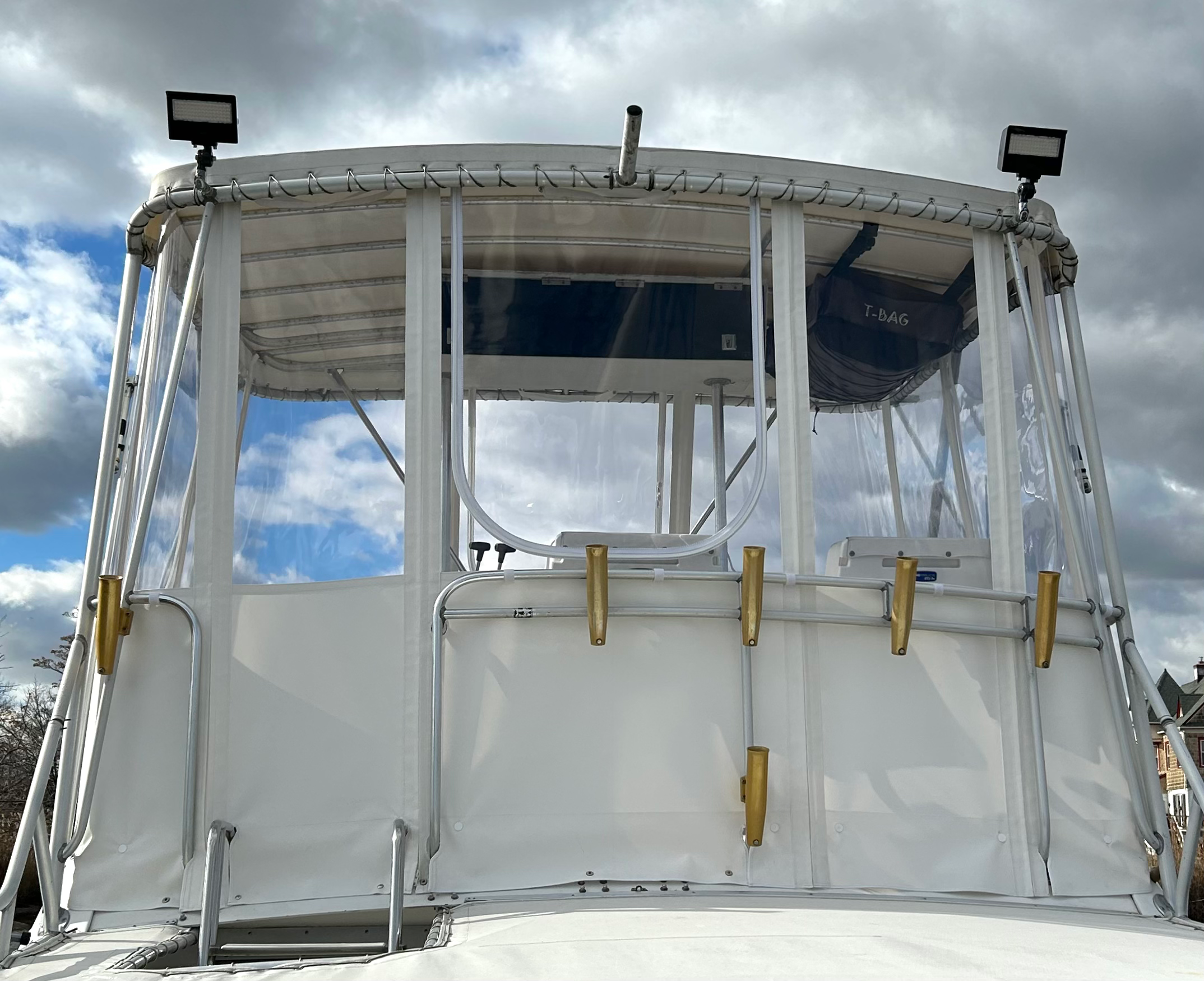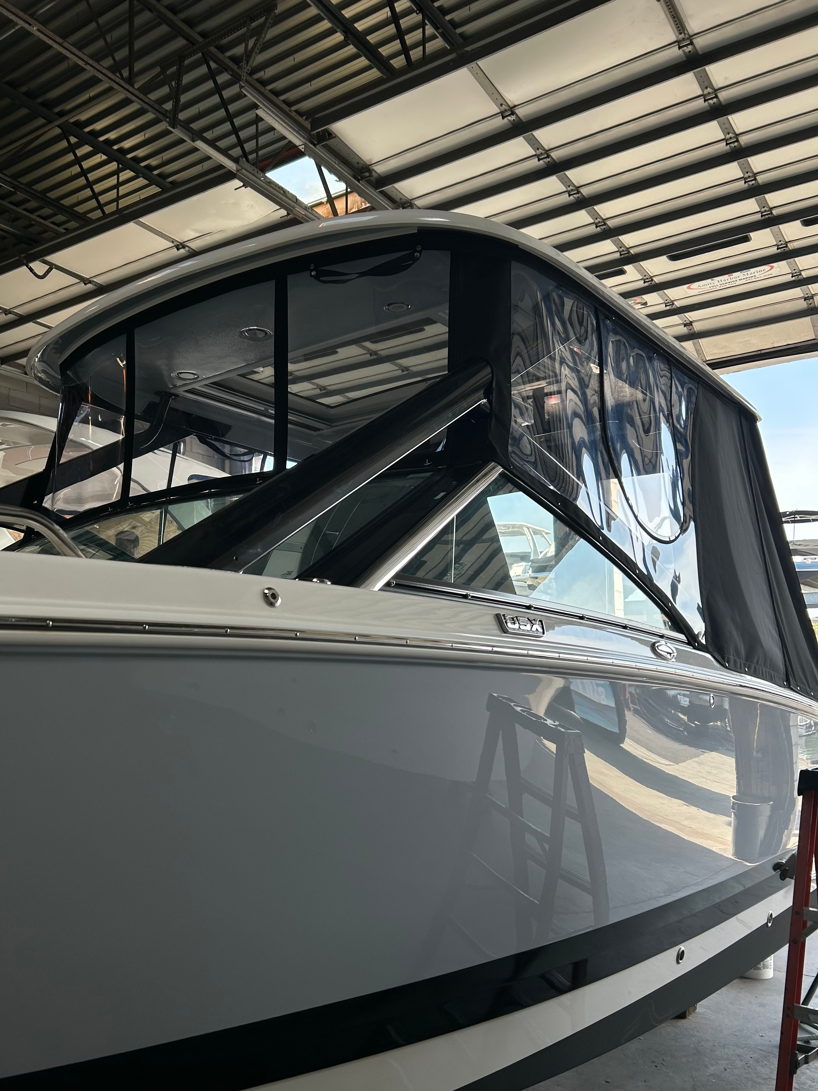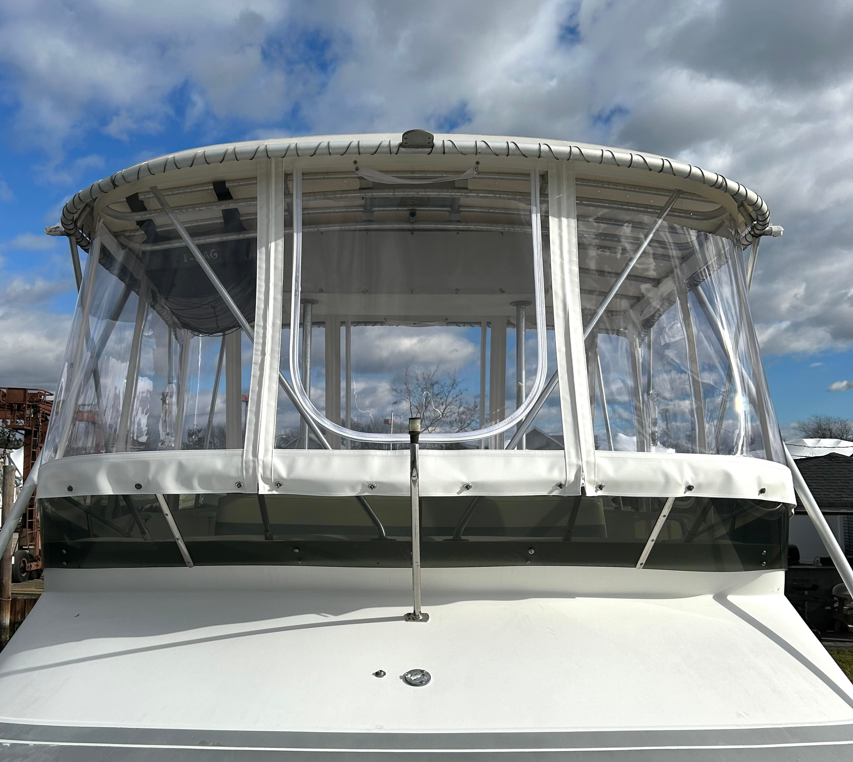For marine applications, we create custom boat covers, full enclosures, bimini tops, cockpit covers, and protective systems tailored to the exact specifications of your vessel. We use premium marine-grade canvas fabrics along with advanced enclosure materials, including Strataglass®. Strataglass® is a high-clarity, scratch-resistant enclosure material widely recognized for its superior durability and long-term performance, as well as polycarbonate, acrylic, and other hard clear systems selected for their clarity, strength, and longevity.