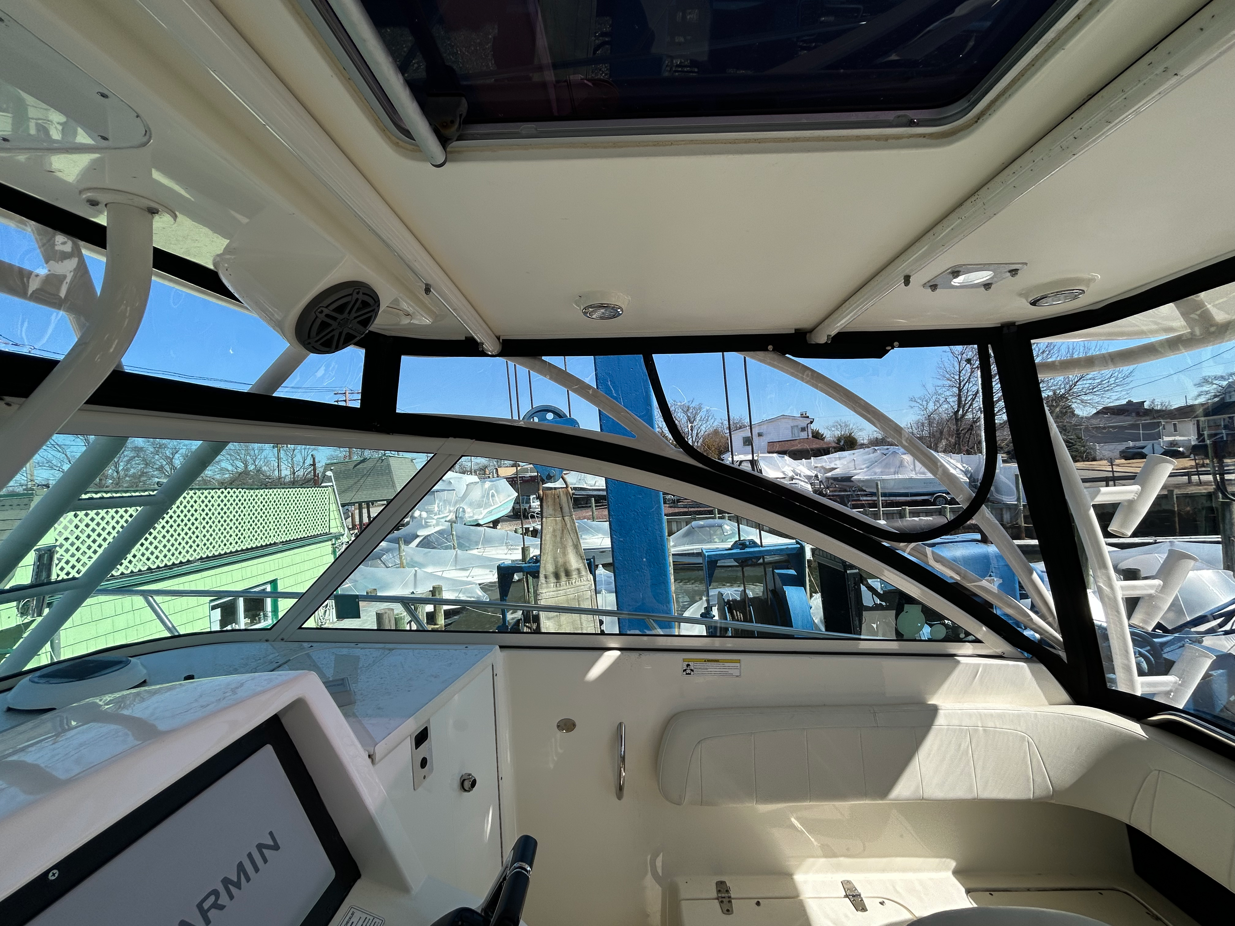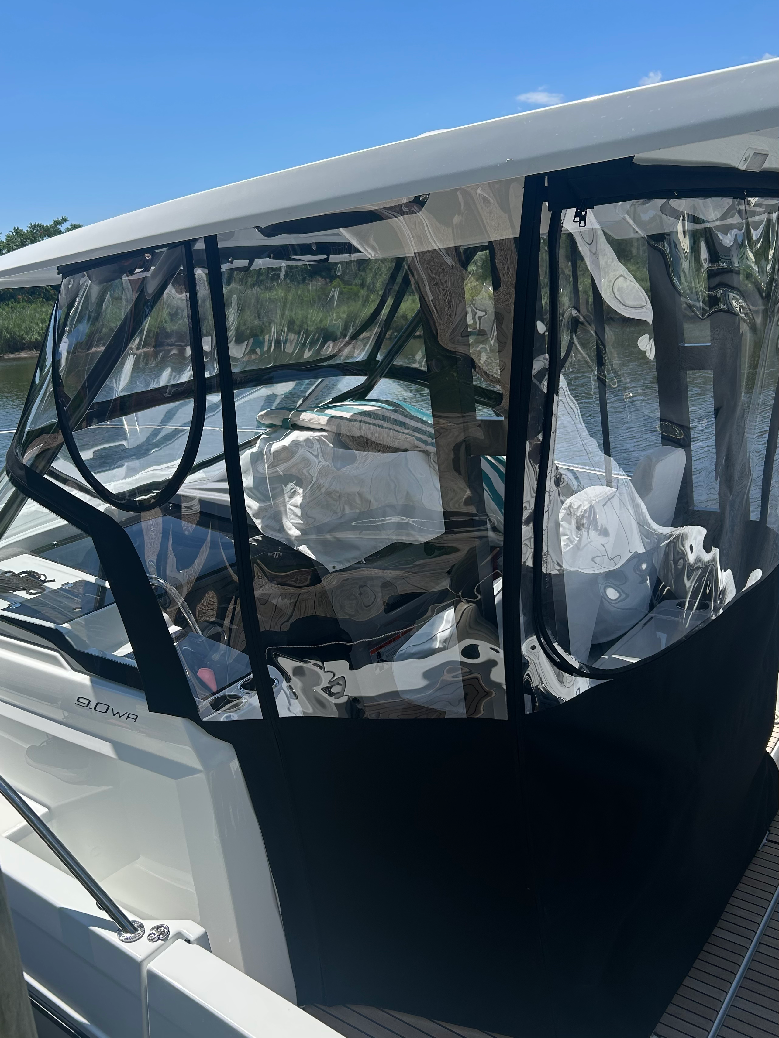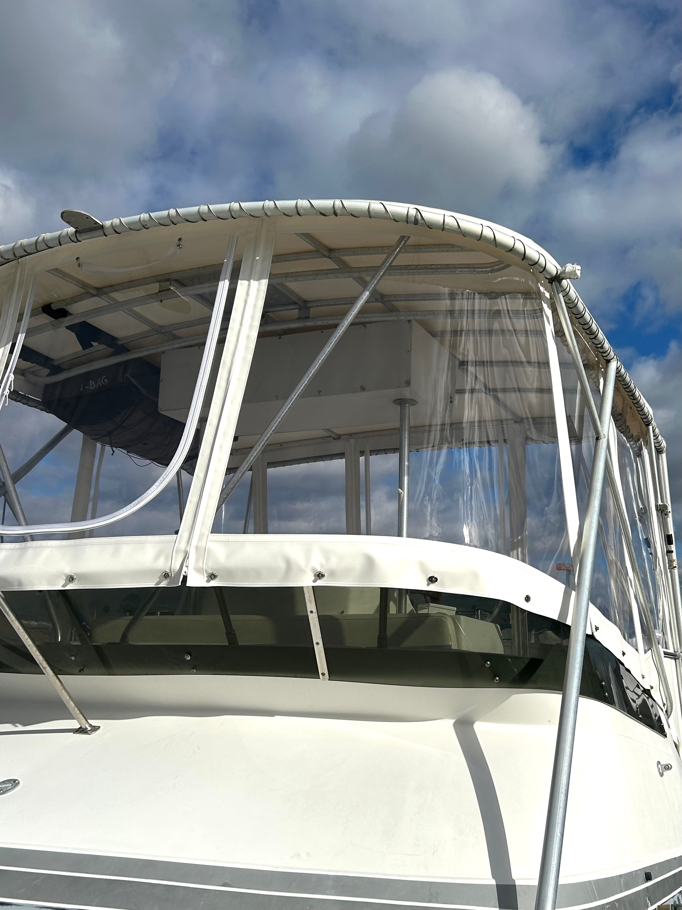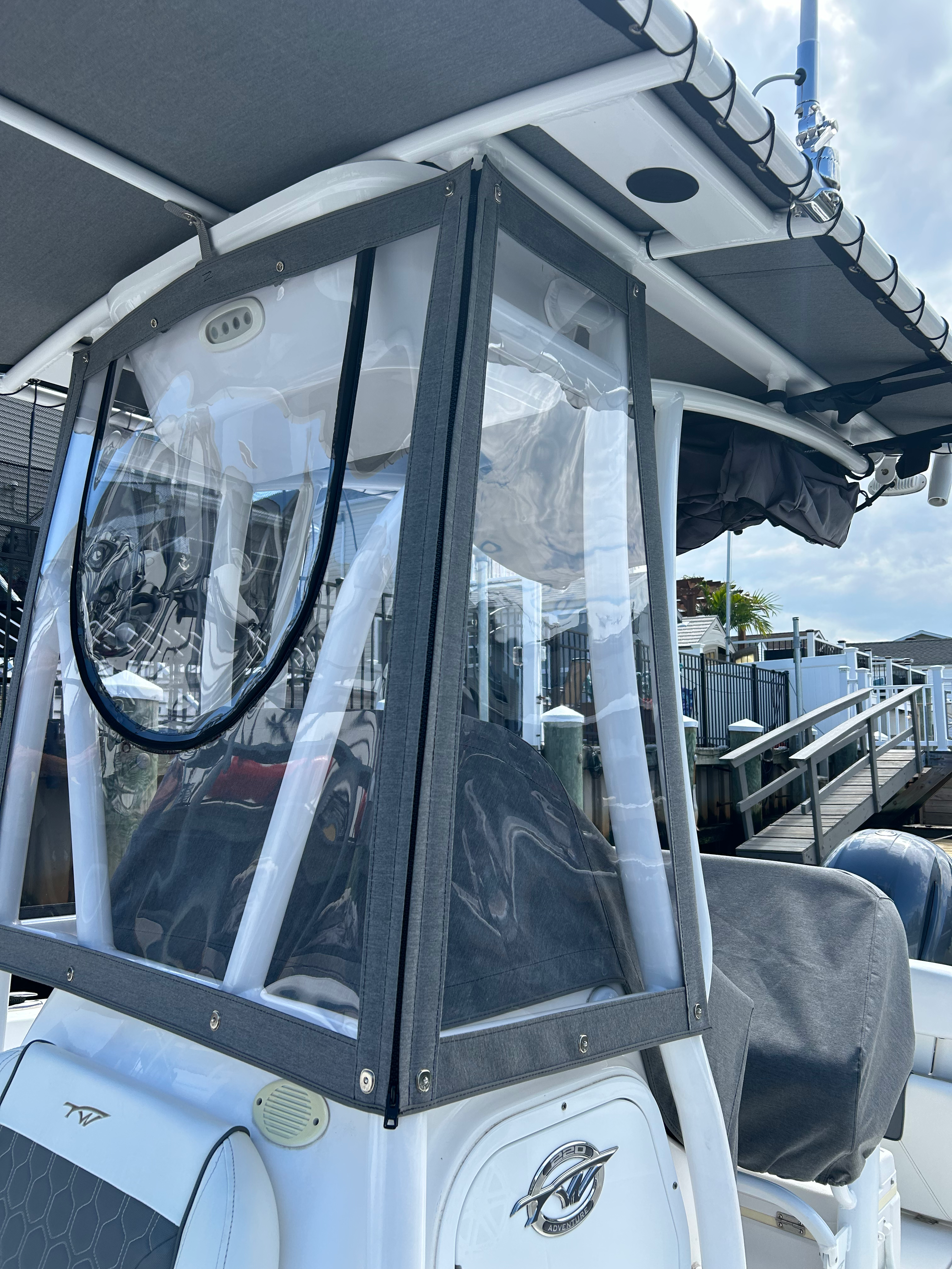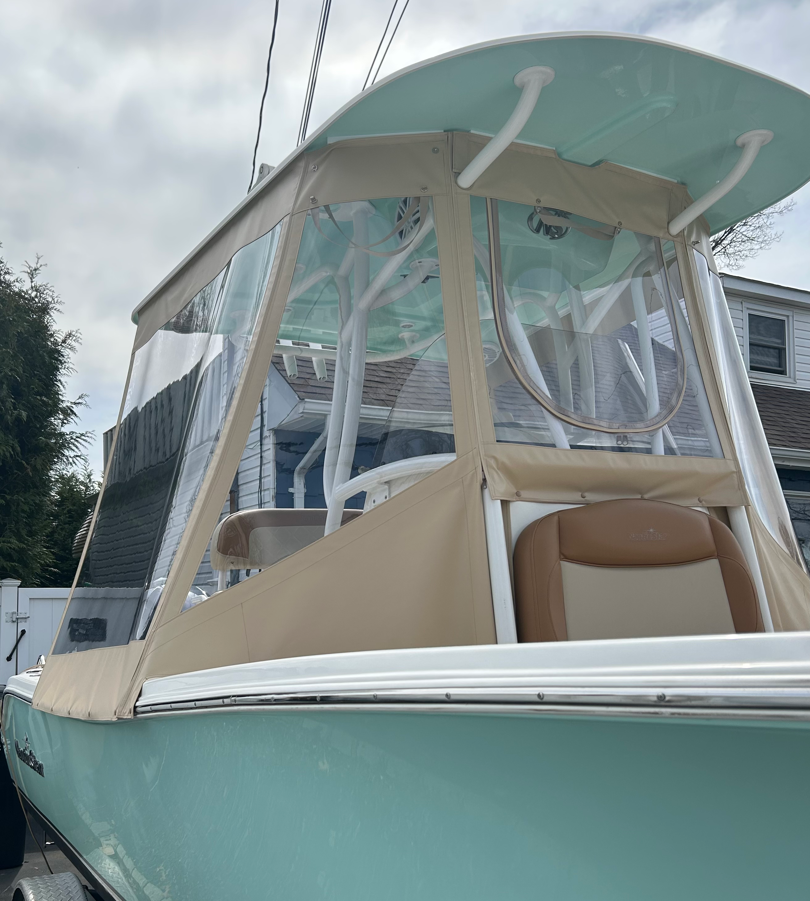 For marine applications, we create custom boat covers, full enclosures, bimini tops, cockpit covers, and protective systems tailored to the exact specifications of your vessel. We use premium marine-grade canvas fabrics along with advanced enclosure materials, including Strataglass®. Strataglass® is a high-clarity, scratch-resistant enclosure material widely recognized for its superior durability and long-term performance, as well as polycarbonate, acrylic, and other hard clear systems selected for their clarity, strength, and longevity.